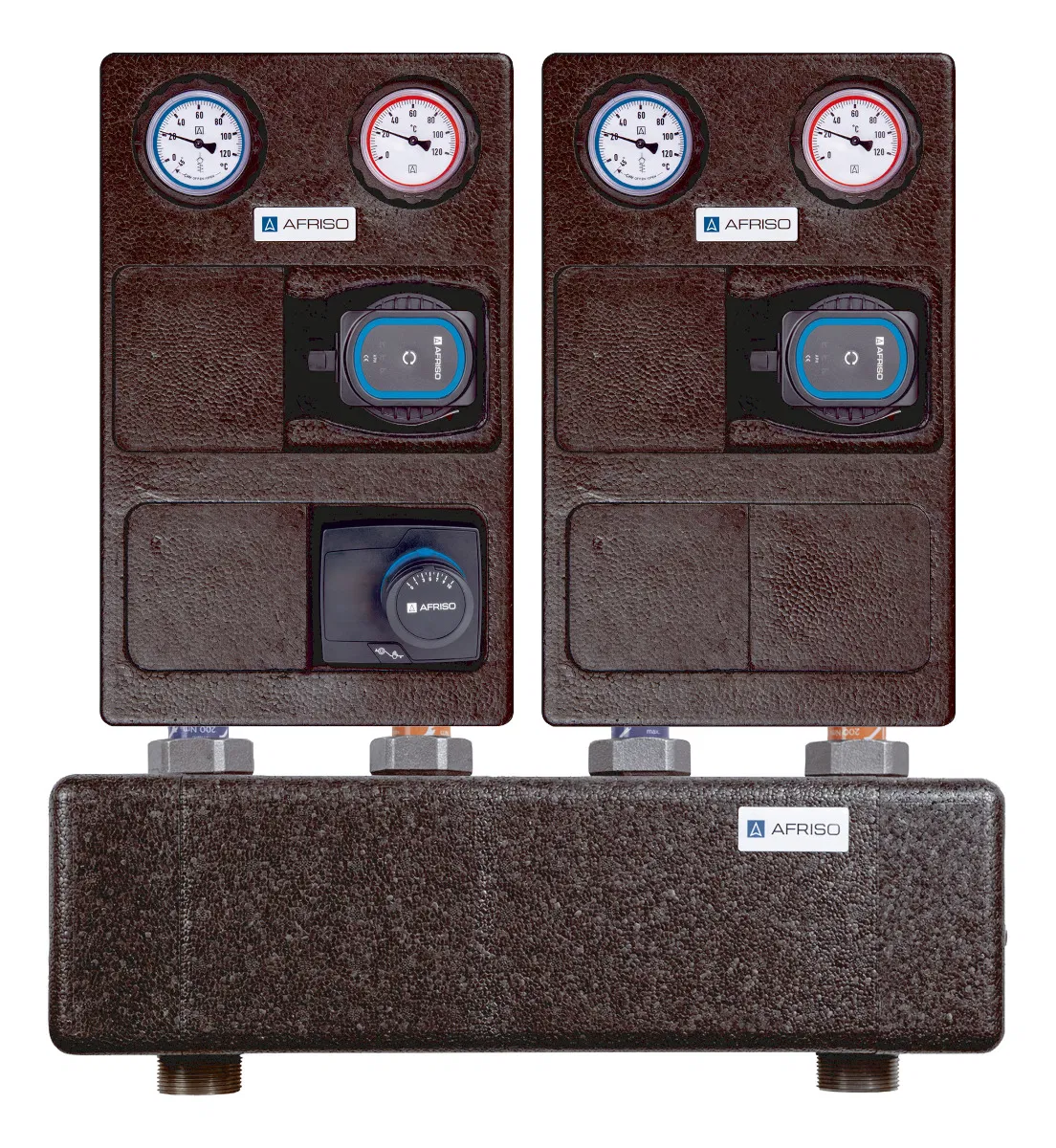 Afriso Pumpengruppen-Set inklusive Verteiler – 1x Mischerkreis, 1x Direktkreis DN25 (1″)