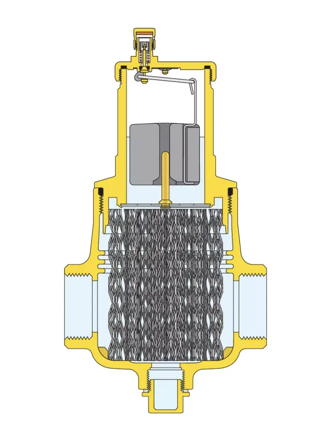 Der Mikroblasenabscheider ist mit einem Entleerungsstutzen ausgestattet, der eine einfache Entleerung und Wartung ermöglicht. Das robuste Messinggehäuse gewährleistet Langlebigkeit und Zuverlässigkeit im Betrieb.