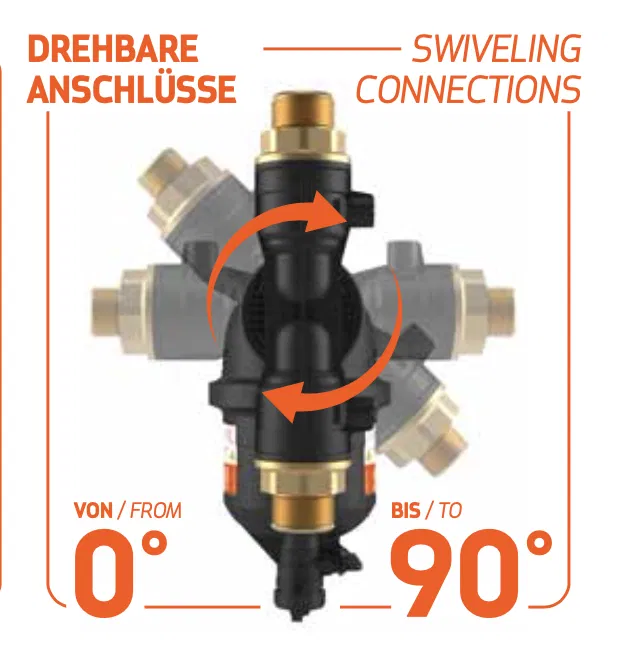 Drehbares T-Fitting aus Messing oder Technopolymer für flexible Rohrführung