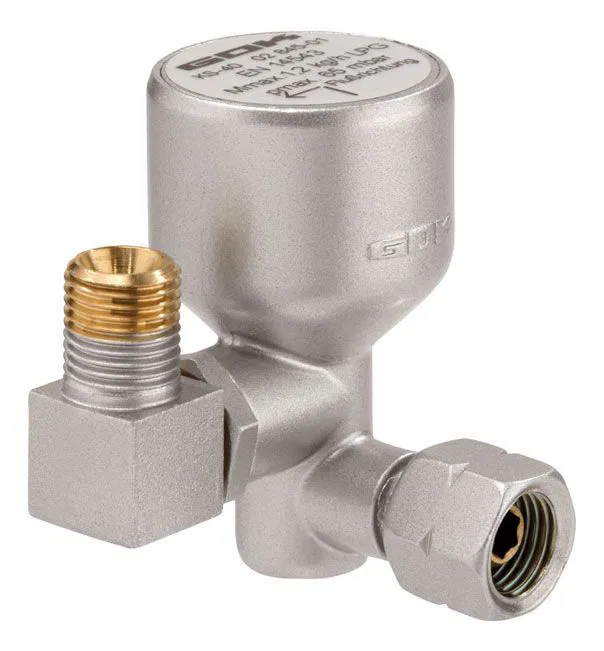 Das GOK KS-40 ist ein Gas-Kippschutzventil zum Anschluss an ortsveränderliche Gasgeräte mit Zündsicherung, z. B. Terrassenstrahler. Es schützt vor unkontrolliertem Gasfluss, wenn das Gerät kippt, und öffnet nach dem Aufstellen automatisch wieder.