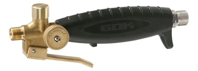 Der GOK Handbrennergriff Typ 099 dient zur präzisen Dosierung der Gaszufuhr bei allen Löt- und Anwärmgeräten. Der robuste Kunststoffgriff ist mit einem kurzen Hebel sowie einer Innenverstellung der Wachflamme ausgestattet und eignet sich besonders für den Einsatz im Baustellenbereich.