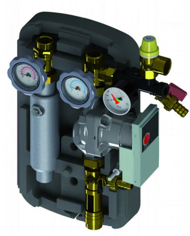 Die VERTIGO VRD-90 ist ideal für Wand- oder Speichereinbau geeignet und verfügt über eine integrierte Sicherheitsgruppe mit Solar-Sicherheitsventil, Manometer, Rückschlagventil, Entladehahn, Thermometerkugelhähne sowie Anschluss für das Ausdehnungsgefäß. Ein Austausch der Umwälzpumpe ist ohne Entleeren der Anlage möglich.