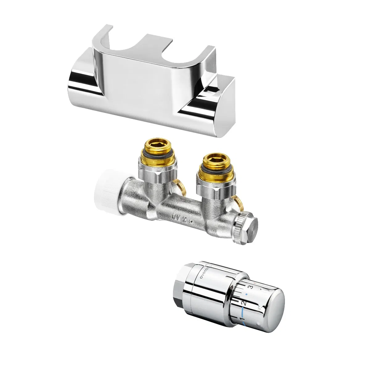 Das Oventrop Anschluss-Set Multiblock T und Uni SH Eck ist die perfekte Komplettlösung für den Anschluss von Badheizkörpern in Zweirohrsystemen. Dieses Set vereint Zweirohrarmatur, Thermostatkopf und Designabdeckung in chromfarbener Eckausführung, ideal für moderne Bad- und Designheizkörper.