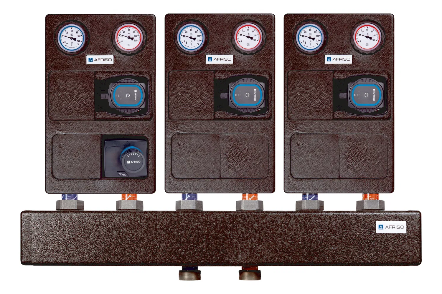 1 x Afriso Kesselverteiler KSV 125, Heizkreisverteilerbalken DN25 inkl. EPP-Isolierung, Achsabstand 125 mm (für 3 Heizkreise)