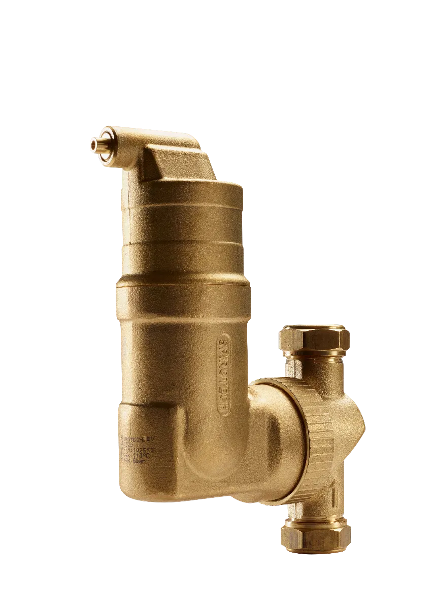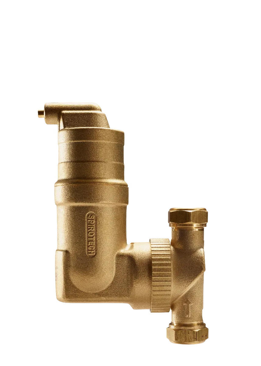 Der SpiroVent Mikroluftblasenabscheider entfernt kontinuierlich Luft und Mikroluftblasen aus Heiz- und Kühlkreisläufen und sorgt so für eine effiziente und störungsfreie Funktion der Anlage. Dank drehbarem Anschluss kann der Abscheider flexibel in horizontalen oder vertikalen Rohrleitungen installiert werden.