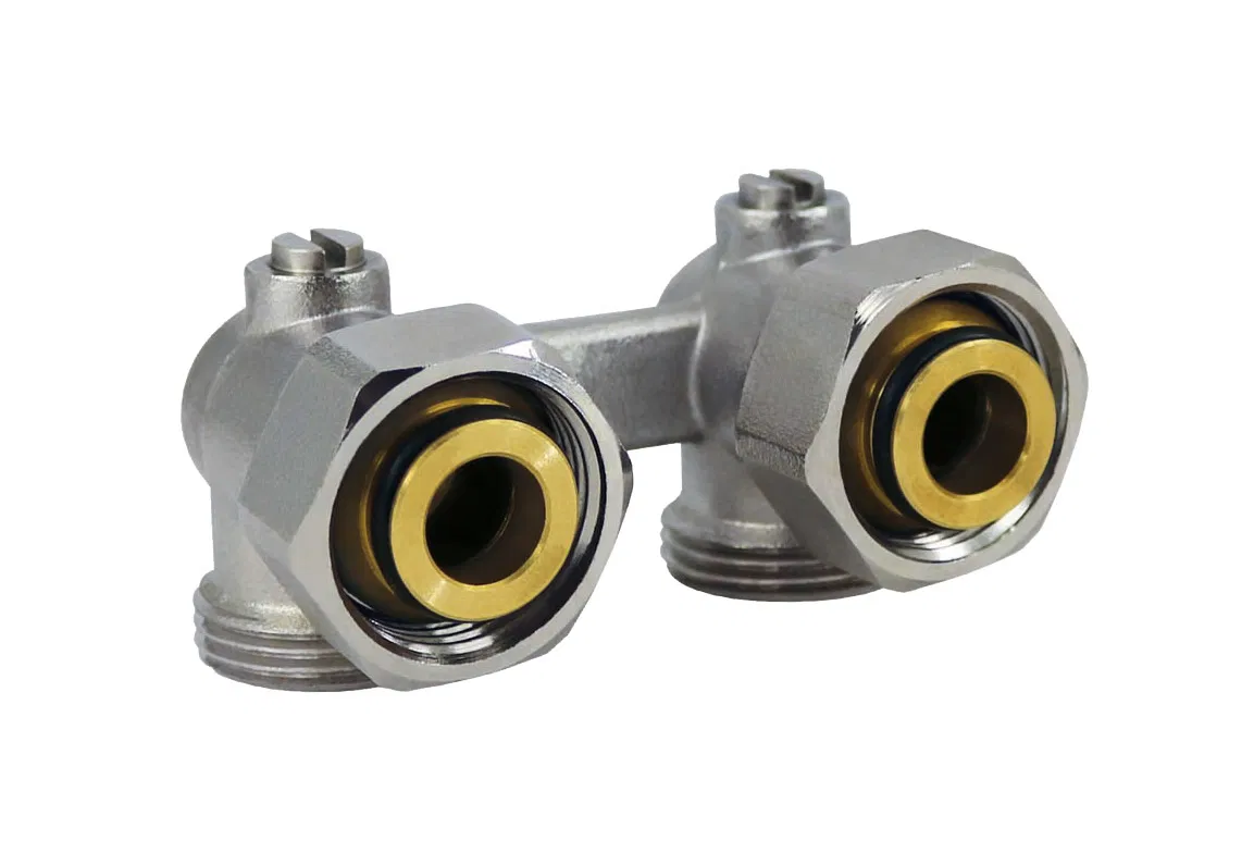 Der Zweirohr-Hahnblock Eurokonus Eck 3/4″ AG × 3/4″ Überwurfmutter ist die praktische Lösung für flexible, sichere Heizkörperanschlüsse in modernen Zweirohrsystemen.